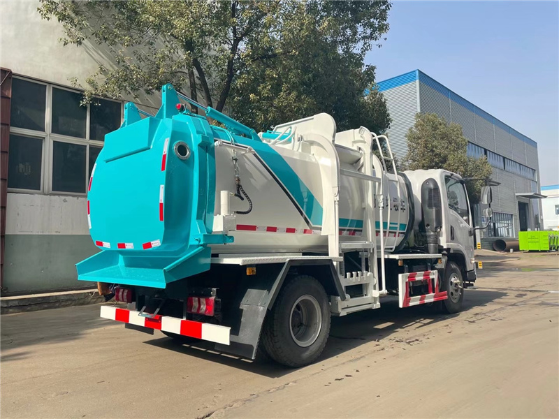 陜汽軒德X9餐廚垃圾車罐體右側(cè)配備掛桶提裝置(可掛載120L或240L國(guó)標(biāo)方形垃圾桶),后蓋液壓鎖緊,后蓋帶有密封條,后門鎖緊與后蓋開關(guān)的操作具有防誤操作,帶高壓清洗功能,液壓馬達(dá),清洗泵,自回位卷盤,水槍。