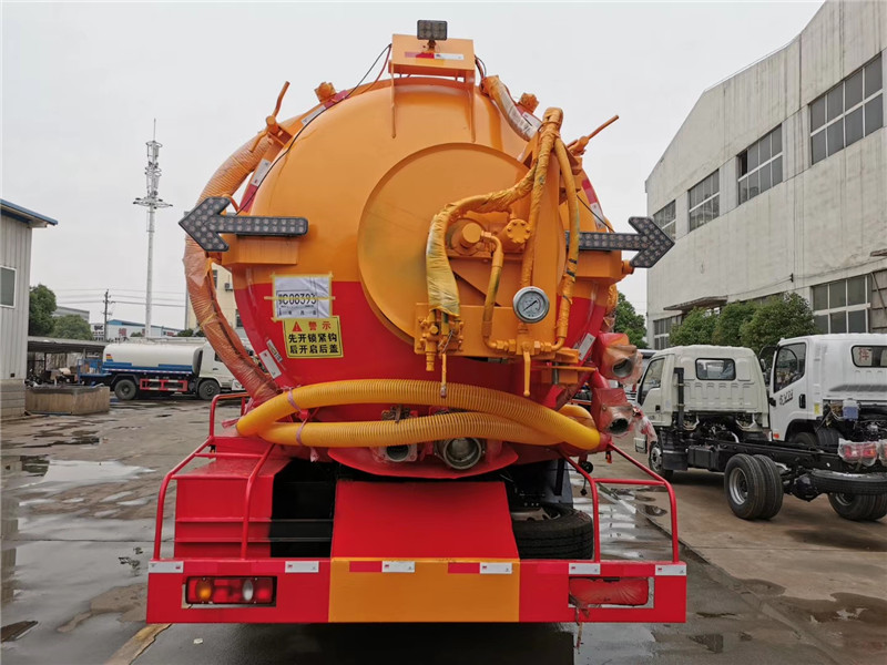這款吸污車高壓泵采用通潔270L型號,18兆帕壓力,自制大過濾桶,采用不銹鋼過濾網,免拆洗,可以有效防止雜質進泵。吸污泵采用山東2BE-204水循環真空泵,精密度高,吸力大,污罐頂安裝防溢閥,真空泵進氣口安裝兩道不銹鋼過濾網,防止污物進泵。后高壓卷盤三角式雙插栓固定,左右旋轉液壓控制,穩定可靠,卷盤加大加厚(8毫米),帶淋管功能(高壓管作業后,往回收時,可以沖洗高壓管)。