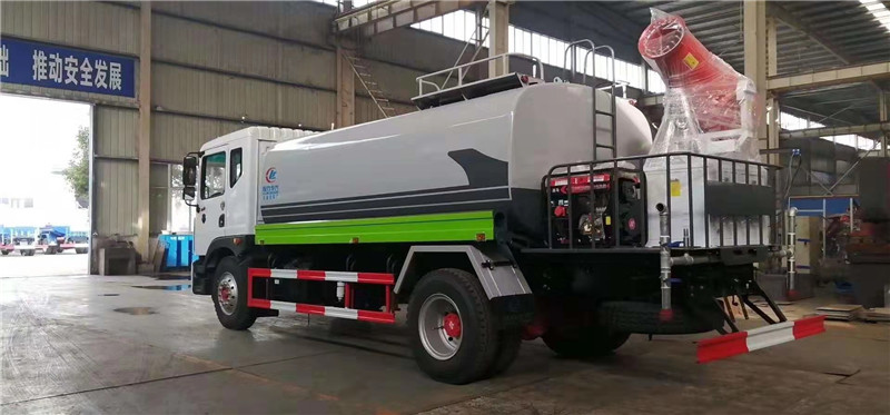另外,該車罐體尾部采用大平臺,可搭載30米車載式風送噴霧機組,具有功力強、射程遠、穿透力強、霧粒附著力強、覆蓋范圍廣、可以實現精量噴霧等特點,適合風沙抑塵、工地降塵、拆遷降塵,專門用于城市開發區建設工地、拆遷工地、車站儲煤場、洗煤廠、焦化廠、鐵礦、鋼廠、港口等的揚塵風沙控制;在城市遭遇霧霾天氣、空氣質量PM2.5嚴重超標時,可隨意選定一個區域進行液霧降塵、分解淡化空氣中的顆粒濃度、將飄浮在空氣中的污染顆粒物、塵埃等迅速逼降地面,達到治理凈化空氣的明顯良好效果。