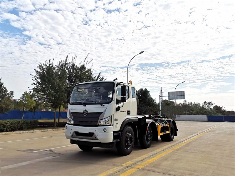 福田瑞沃大金剛3軸鉤臂垃圾車整車型號(hào):HDW5240ZXXBJ6型車廂可卸式垃圾車。