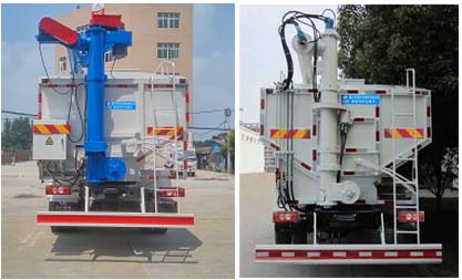 9. 絞龍報警裝置,尾部照明燈程力威所有產品安裝報警器,當打料完成,升降絞龍脫離水平支架固定位置,駕駛室內的蜂鳴器鳴叫,提醒使用者把升降絞龍放到位,以免發生不避要的危險及設備損壞。尾部安裝工作燈,夜間操作更方便。