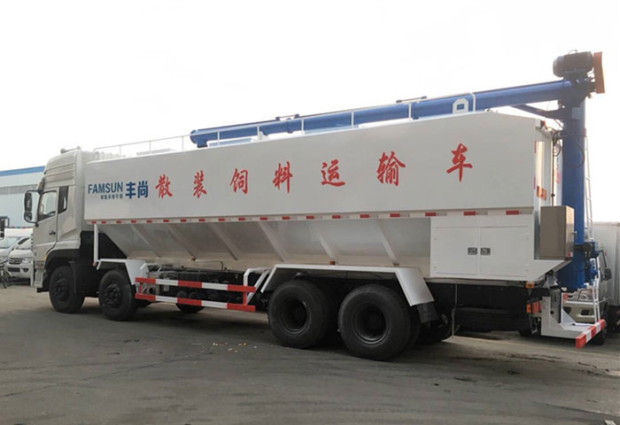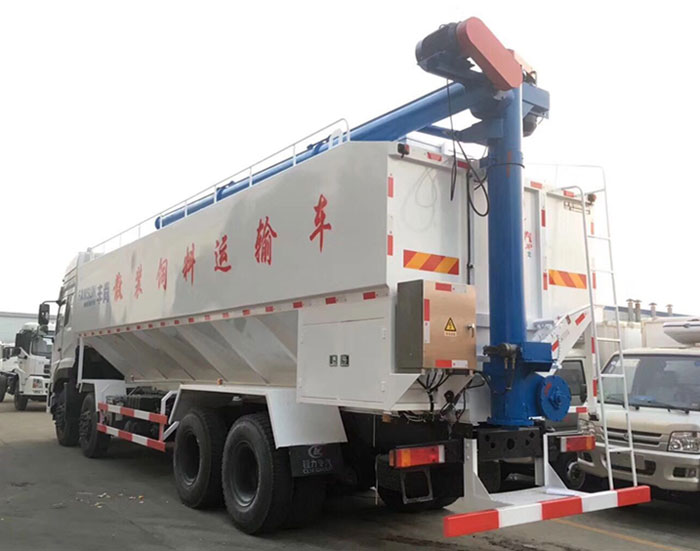 運送介質(zhì)品名: 膨化及顆粒飼料、粉料;介質(zhì)密度:500kg-600kg立方米,罐體有效容積:42立方米,罐體外形尺寸:9000×2495×2310(mm),飼料裝載量20-21噸,380V電動絞龍卸料,罐體內(nèi)部可分4倉,裝卸不同種類飼料,垂直卸料高度8.2米,水平工作半徑7.2米。液壓絞龍式適用于無電力配置場所飼料裝卸運輸。