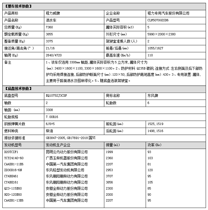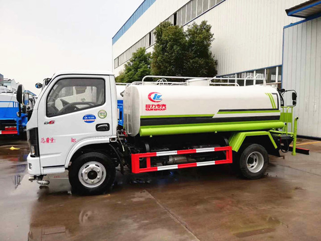 專用配置:罐體容積 5立方,罐體采用國標Q235碳鋼材質,罐體厚度4MM,前后封頭5MM加厚型,罐體內雙層隔板具有防波蕩作用,以減輕汽車行駛時罐內液體沖擊;灑水車整車及外形尺寸嚴格按照國家機動車公告制作而成;裝配大功率專用灑水泵,前沖、后灑、側噴、后平臺帶綠化灑水炮,灑水炮可全方位旋轉,可連續調成直沖狀、大雨、小雨、毛毛雨;配消防接口,自流閥,濾網,帶自吸自排功能。前封頭帶水位計,后平臺主管路帶1寸澆花接口,后爬梯,帶1個消防接頭,帶1個自流閥,1個過濾裝置,其余標配。1、可選裝后平臺帶霧炮機組用于噴霧降塵、農藥噴灑作業;2、可選裝前置電子灑水炮駕駛室操作;3、可選裝氣動球閥駕駛室操作。