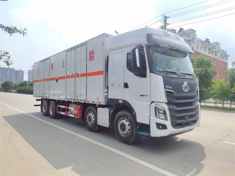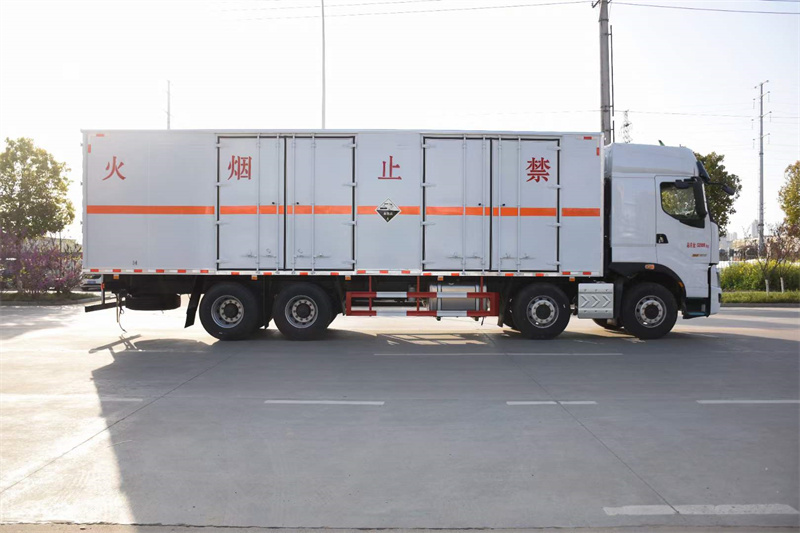 廂體配置:嚴(yán)格按照公告尺寸制作,外板采用1mm厚冷軋板有一次性成型的百葉窗,內(nèi)飾為導(dǎo)電性能良好的鋁板有透氣孔,內(nèi)襯為矩形管骨架牢靠穩(wěn)定,內(nèi)部填充為透氣防潮阻燃的擠塑板,四種材料經(jīng)現(xiàn)代工藝復(fù)合而成,廂體外部上下鋁合金型材包邊,底板和車廂前下部鋪橡膠皮,后門雙開,右側(cè)叁個雙開門,內(nèi)部有固定貨物的臥環(huán),車輛外部有靜電帶、滅火器、防火罩,車廂內(nèi)安裝煙霧報警器和門防盜報警器,嚴(yán)格按照國家危險品相關(guān)法規(guī)張貼。