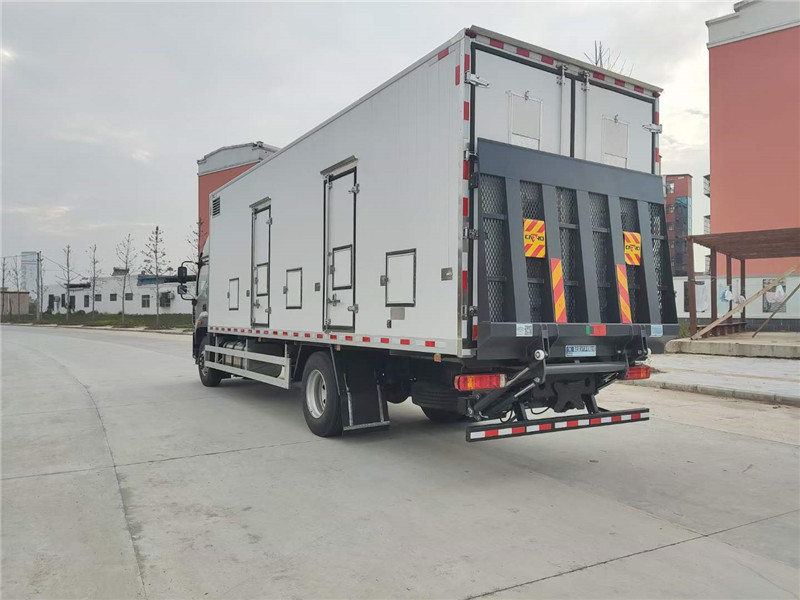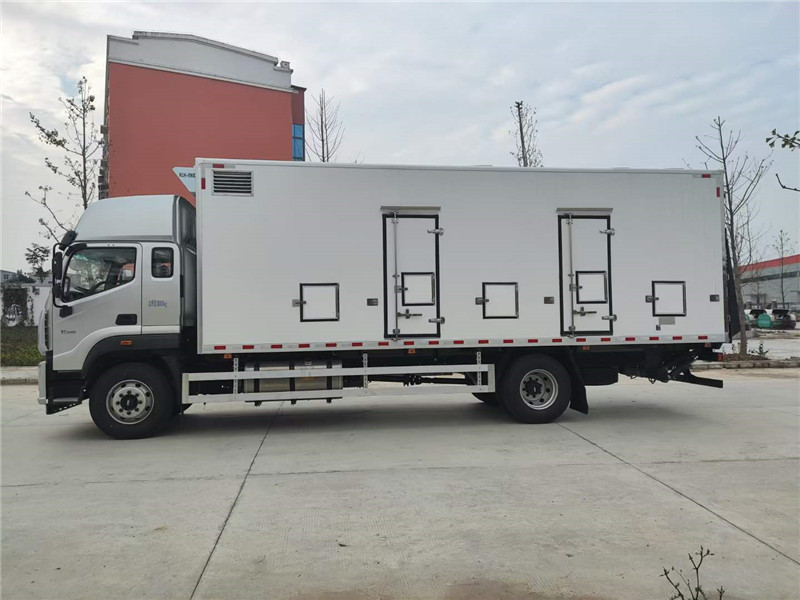 (3)廂體配件:廂體周邊鋁合金包邊,不銹鋼包角,不銹鋼門鎖,不銹鋼門框及合頁,廂體內(nèi)節(jié)能LED照明燈,廂體左右共5扇單開門,廂體靠前帶隔倉。